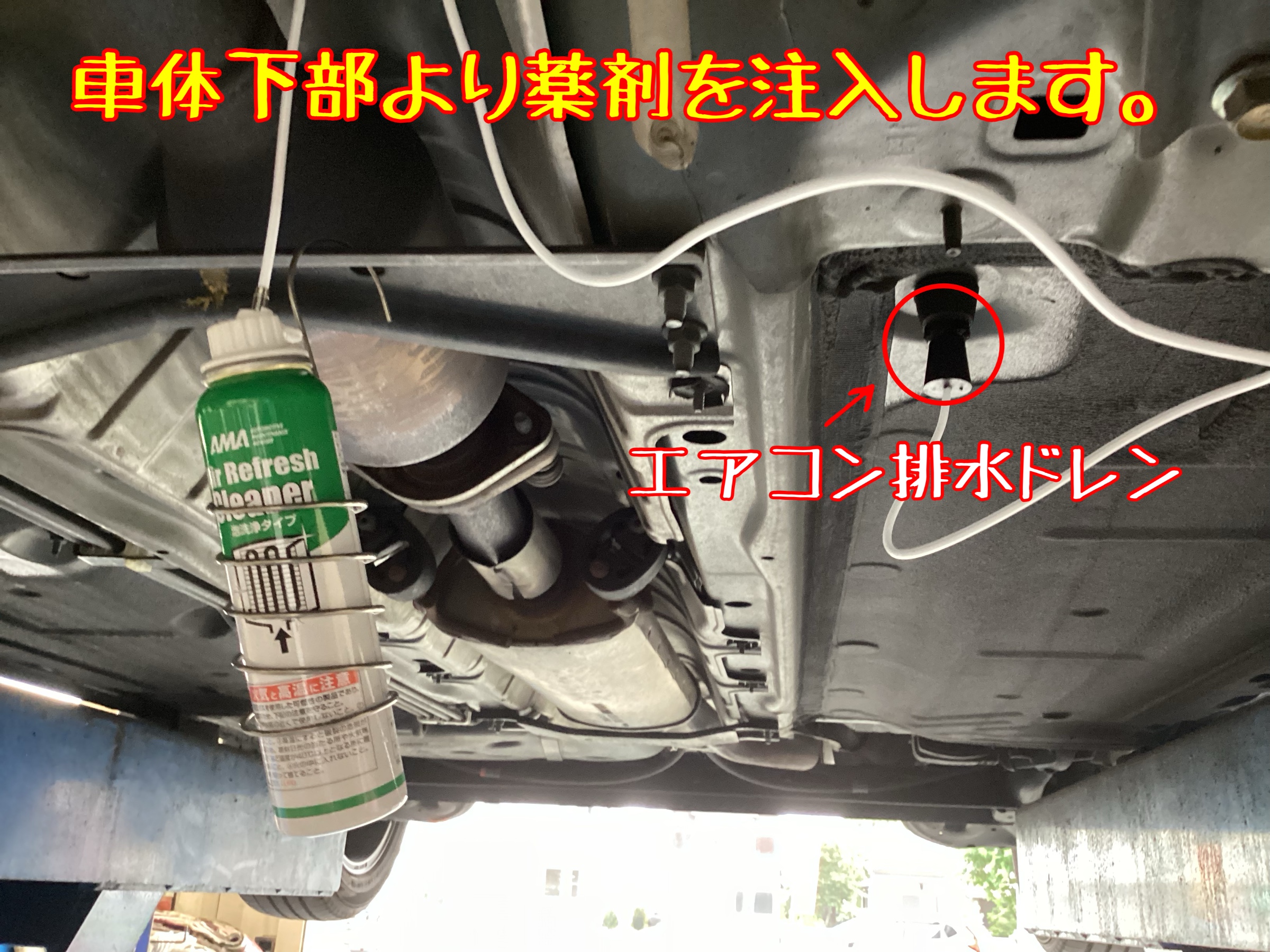 ↑専用ホースを使って、車両下部の