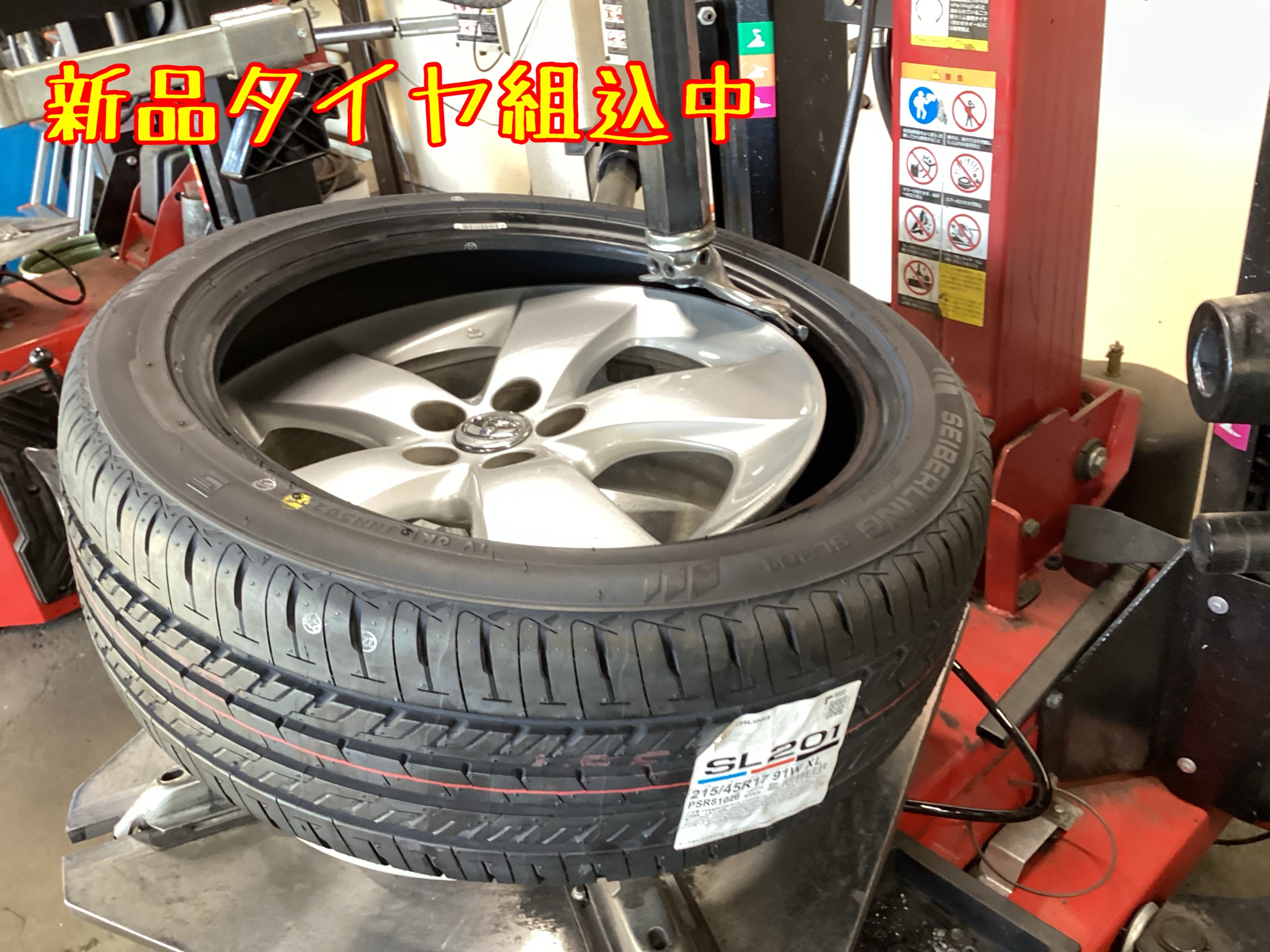 ↑作業中の写真です。新品タイヤを組み込み、