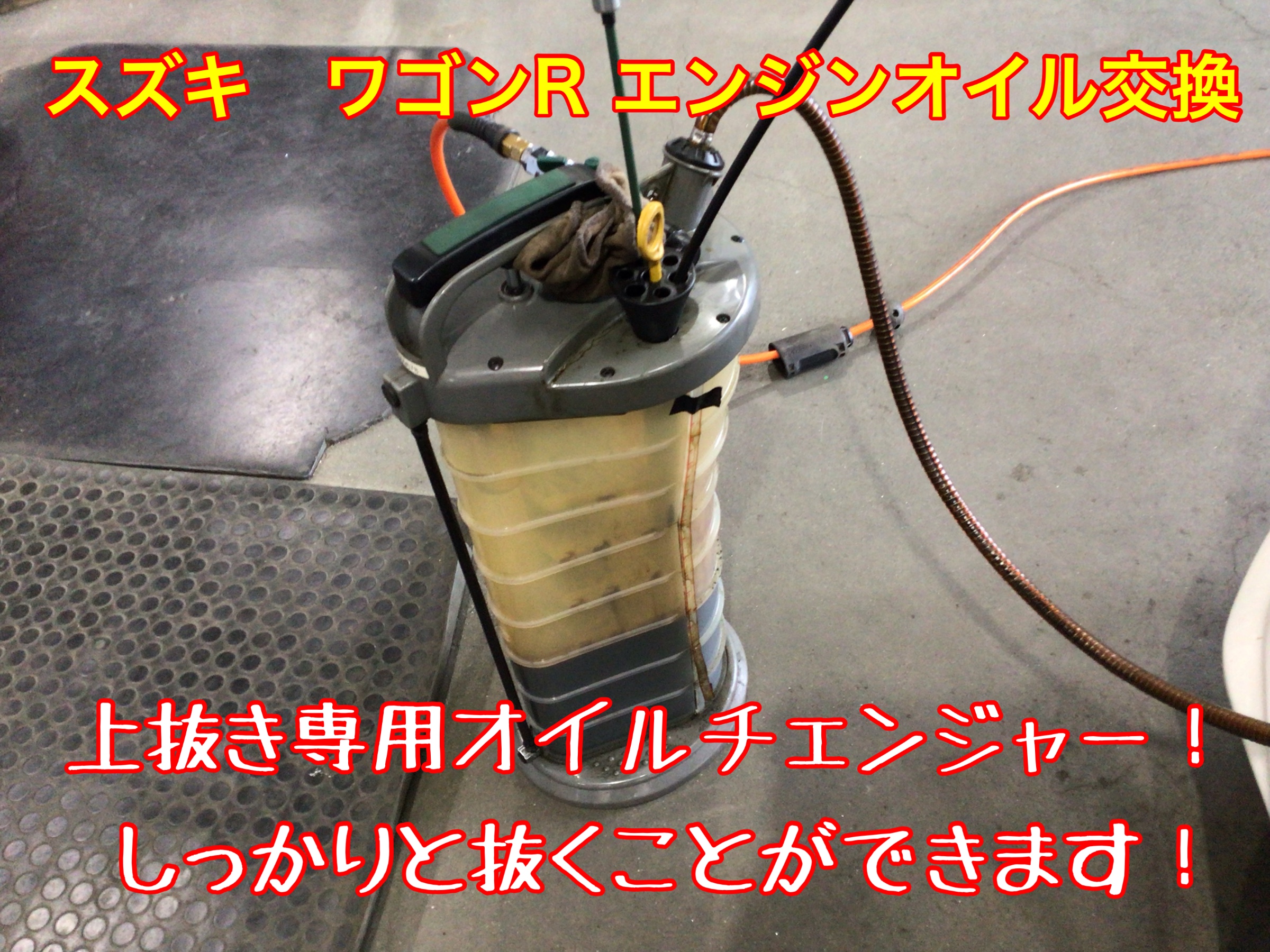 ↑オイルレベルゲージから抜いていくので、最後までしっかりと抜くことができます!