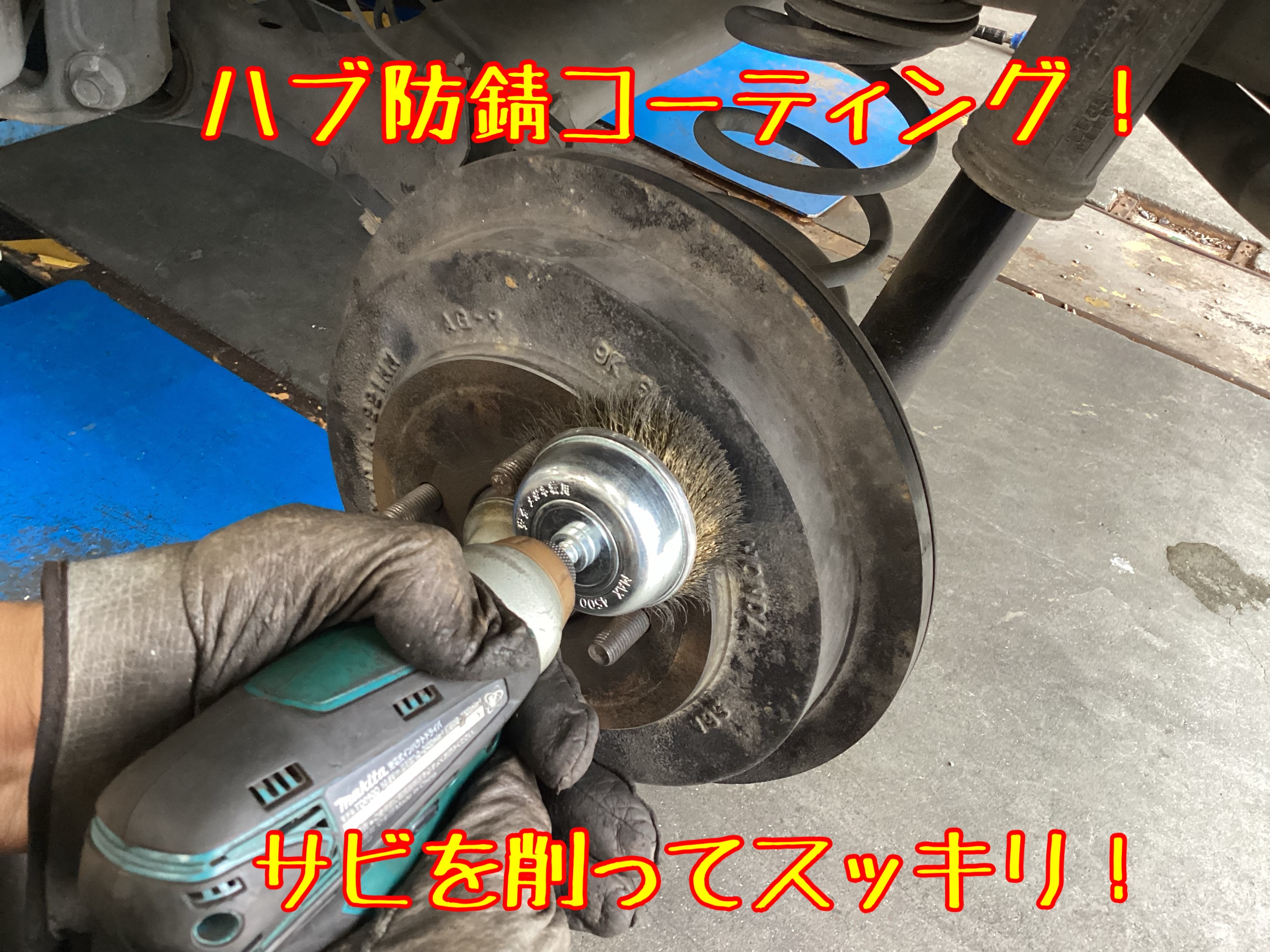 ↑作業中の写真です。ハブ防錆コーティングも一緒に施工しました。
