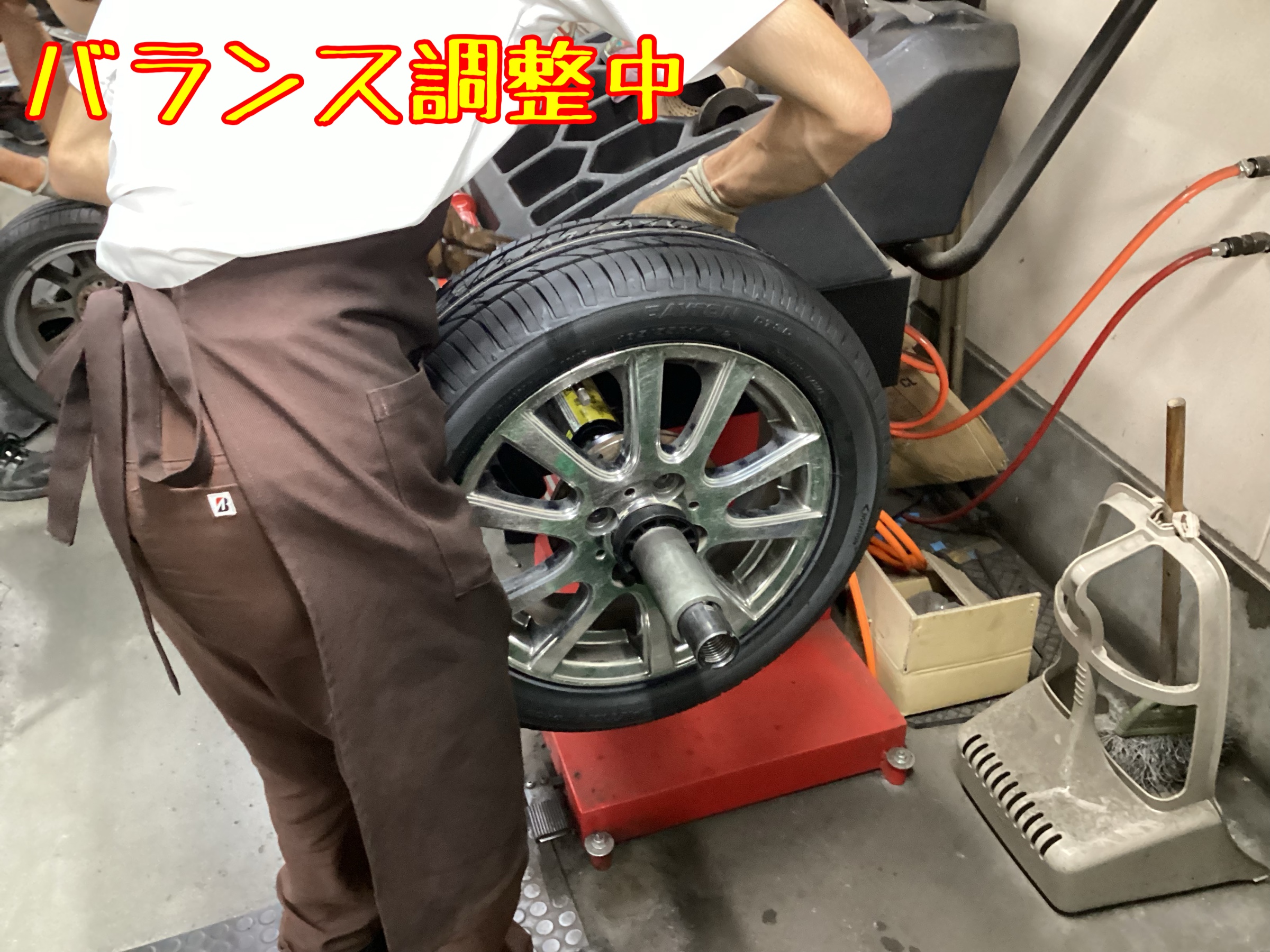 ホイールバランス調整をします。