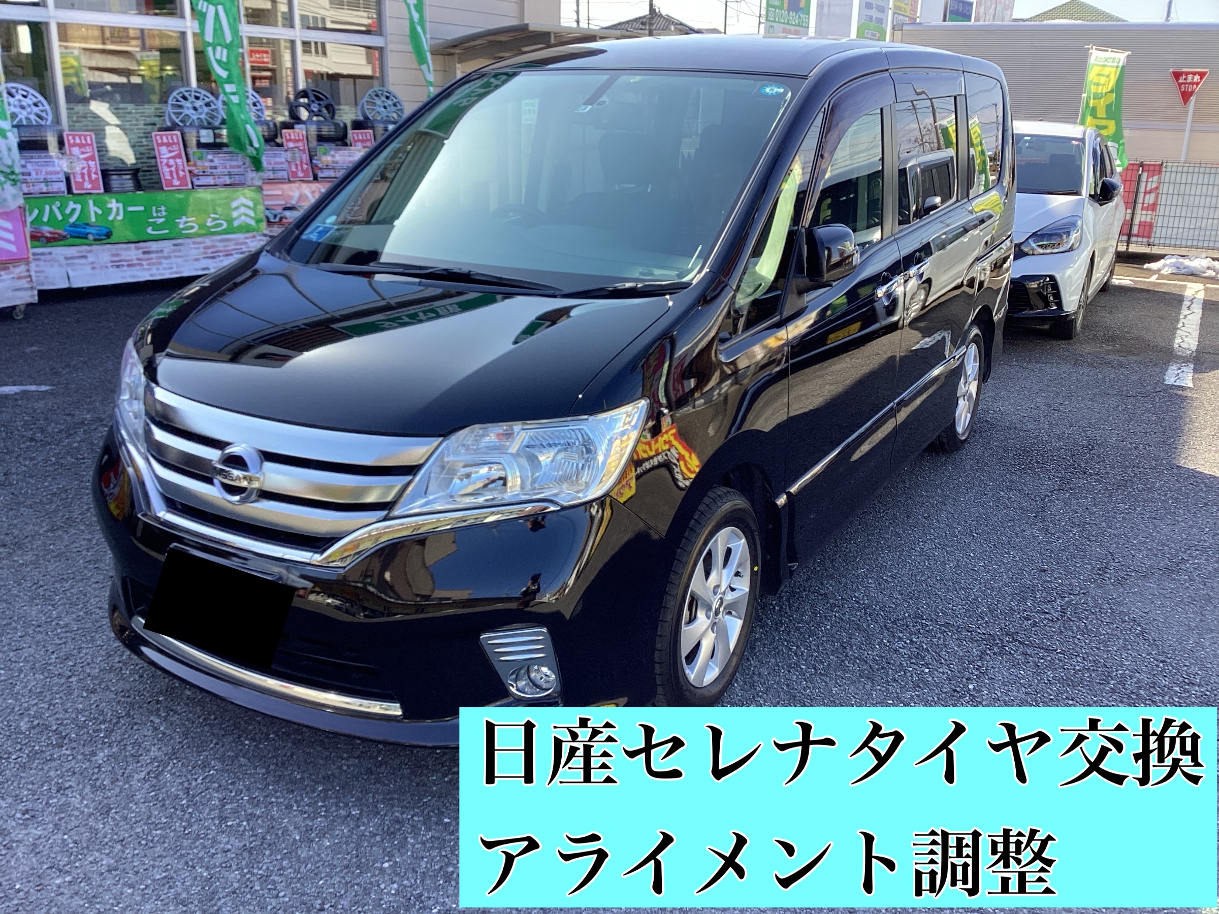 本日は 日産セレナ のタイヤ交換、アライメント調整のご紹介です。