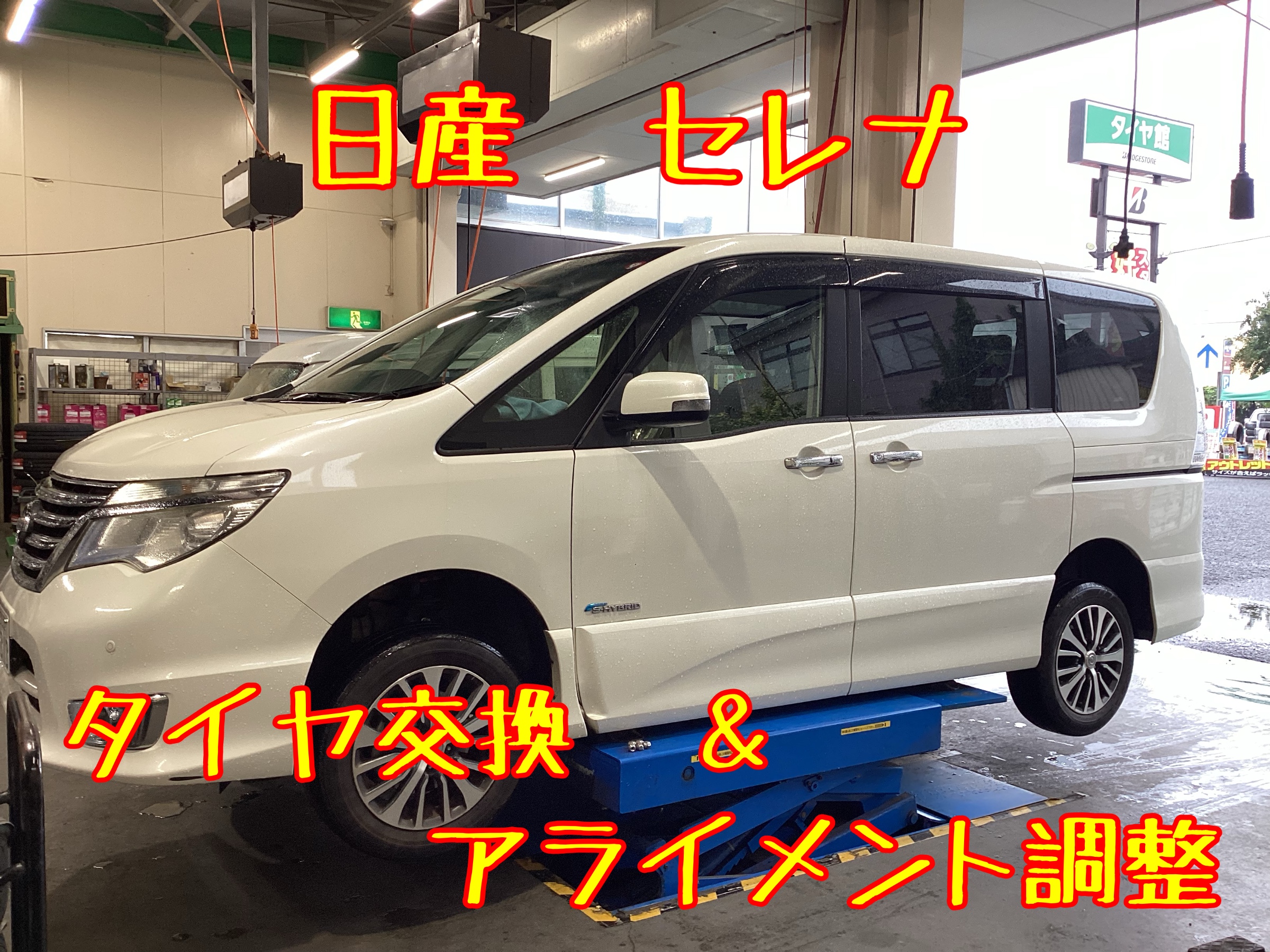本日は 日産 セレナ のタイヤ交換&アライメント調整のご紹介です。