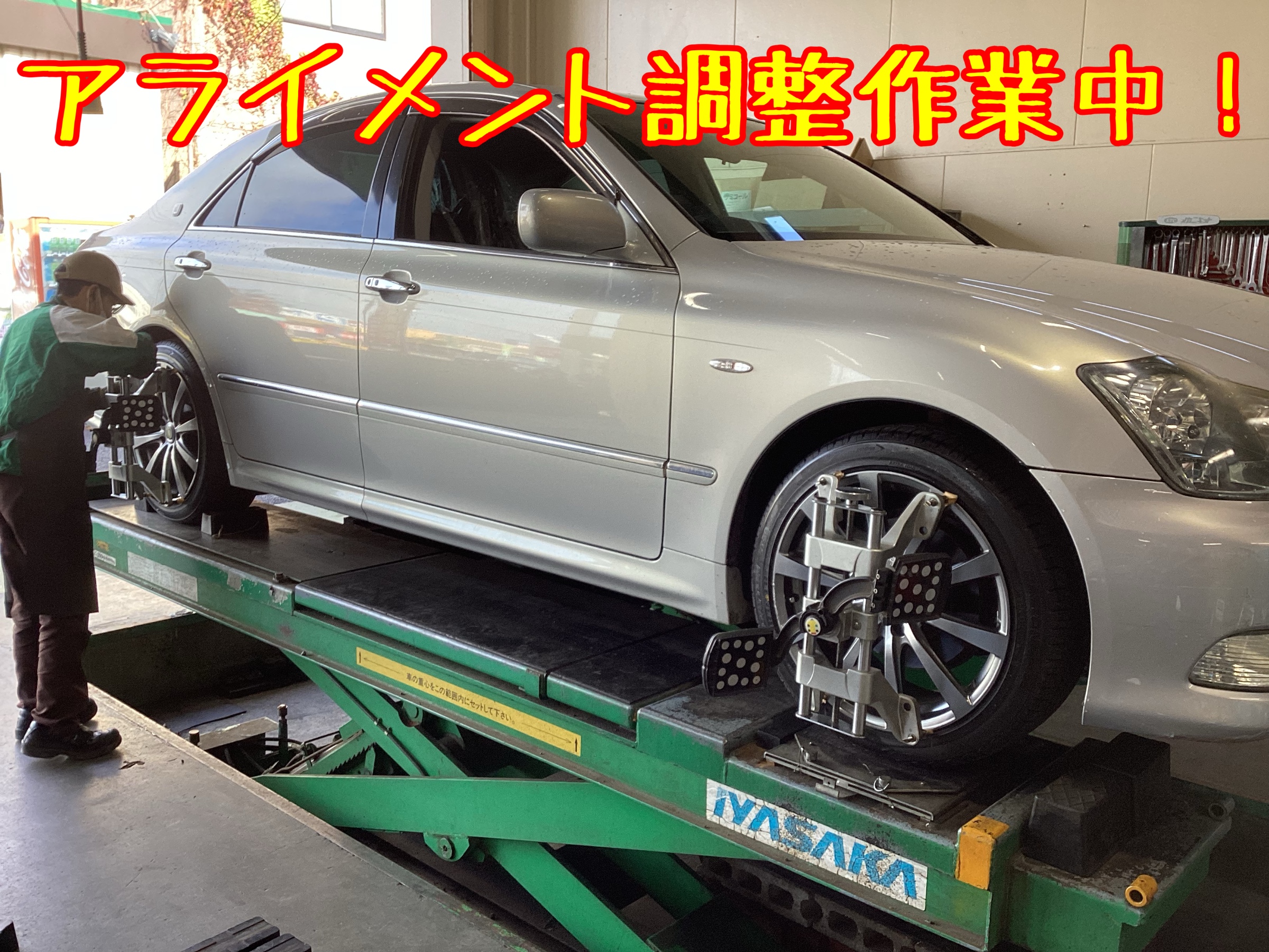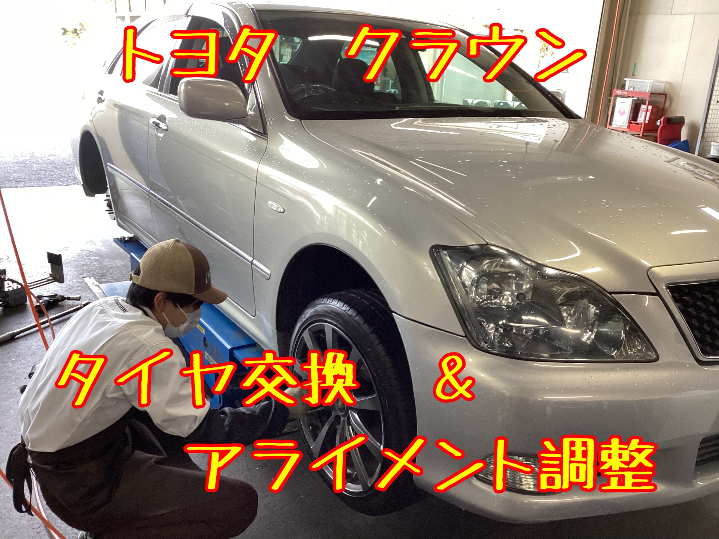 本日は トヨタ クラウン のタイヤ交換&アライメント調整作業を行いました。