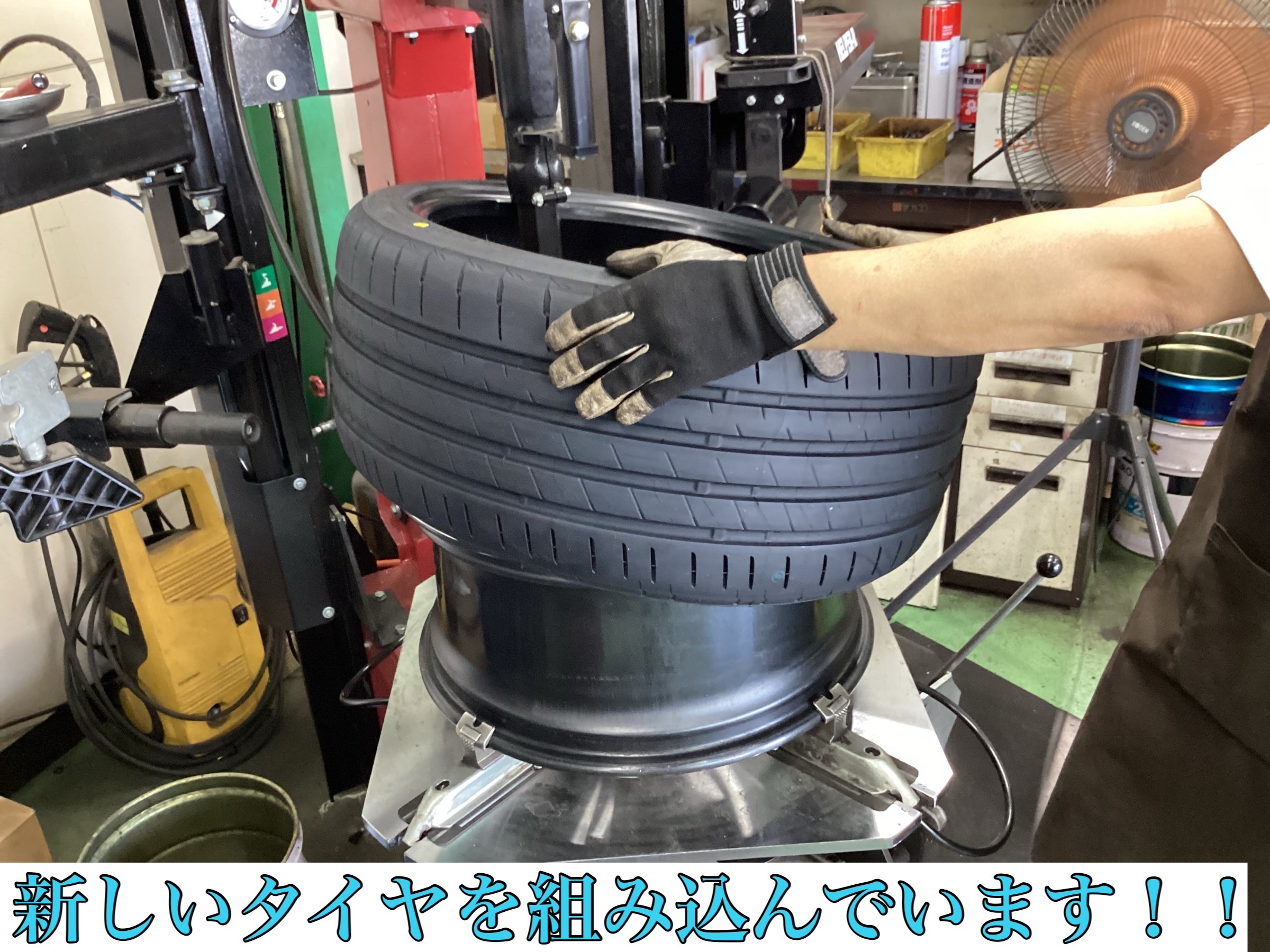 タイヤを組み換え、ホイールバランスをとっていきます。