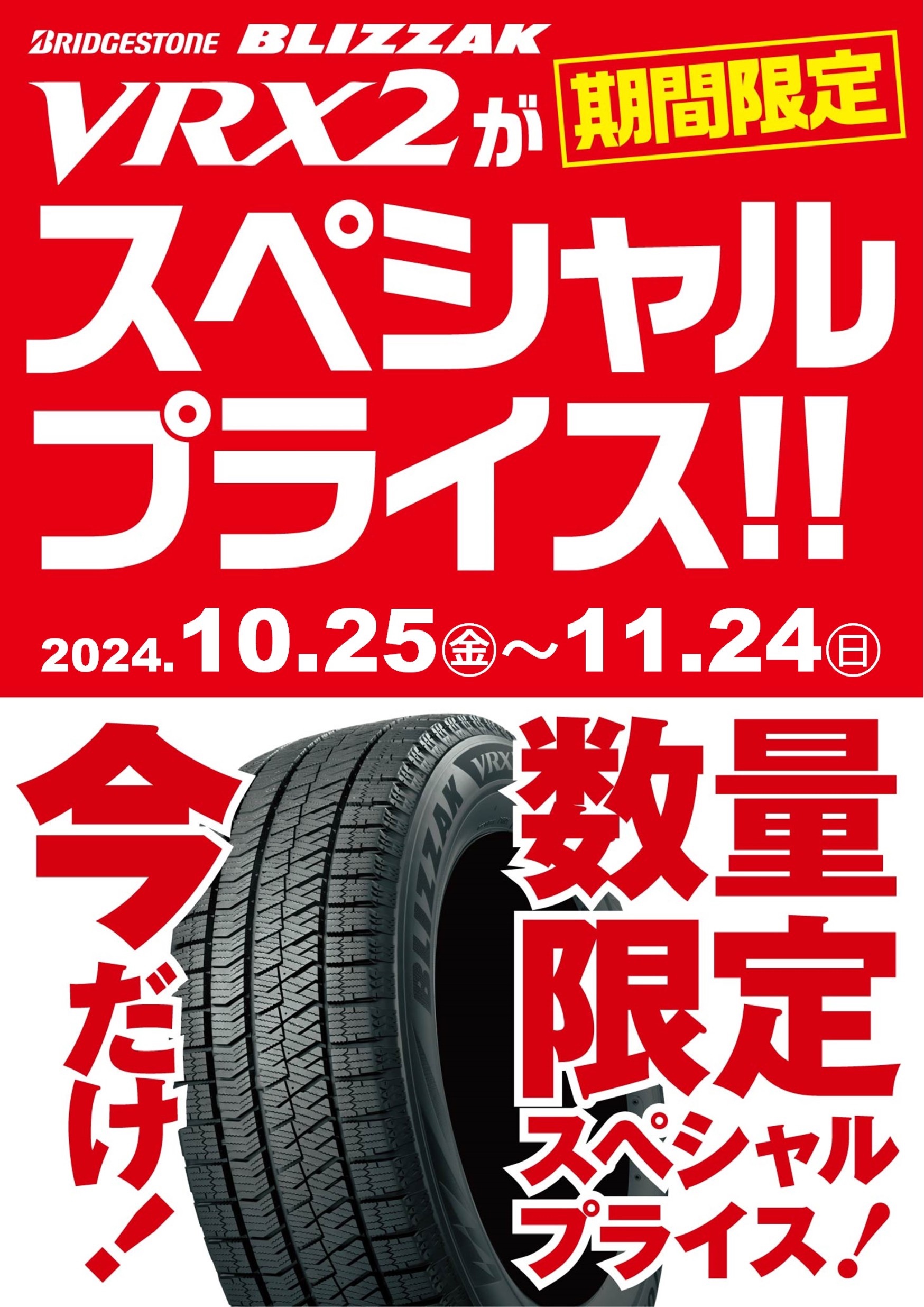 ブリヂストンBLIZZAK VRX2が期間限定・数量限定・サイズ限定で今だけの特別価格です!