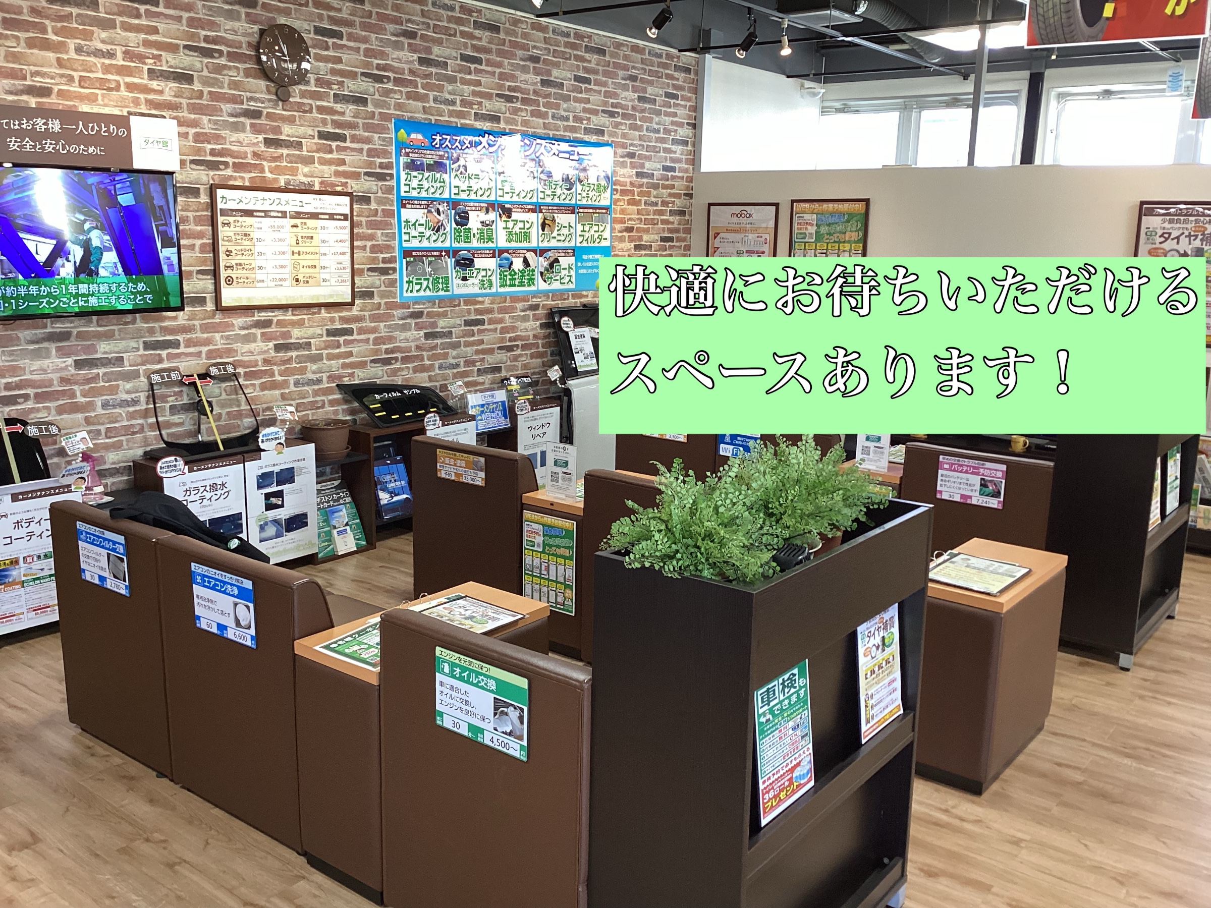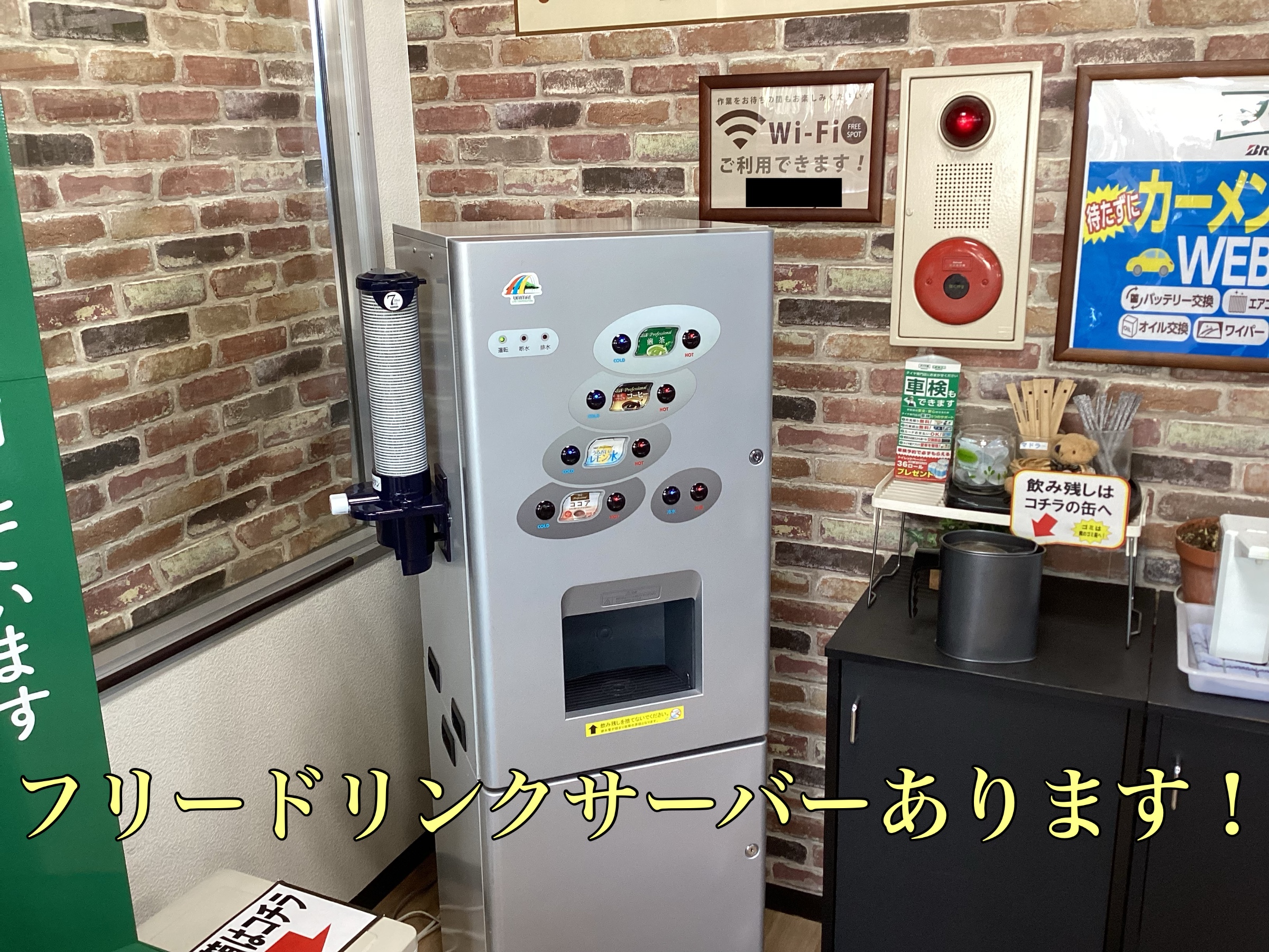 当店では、無料のドリンクがお飲みいただけるウエイティングルームがございますので、快適にお待ちいただけます。