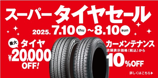 スーパータイヤセール開催!!メンテナンス品もお得に交換!!お盆休み前におススメです!