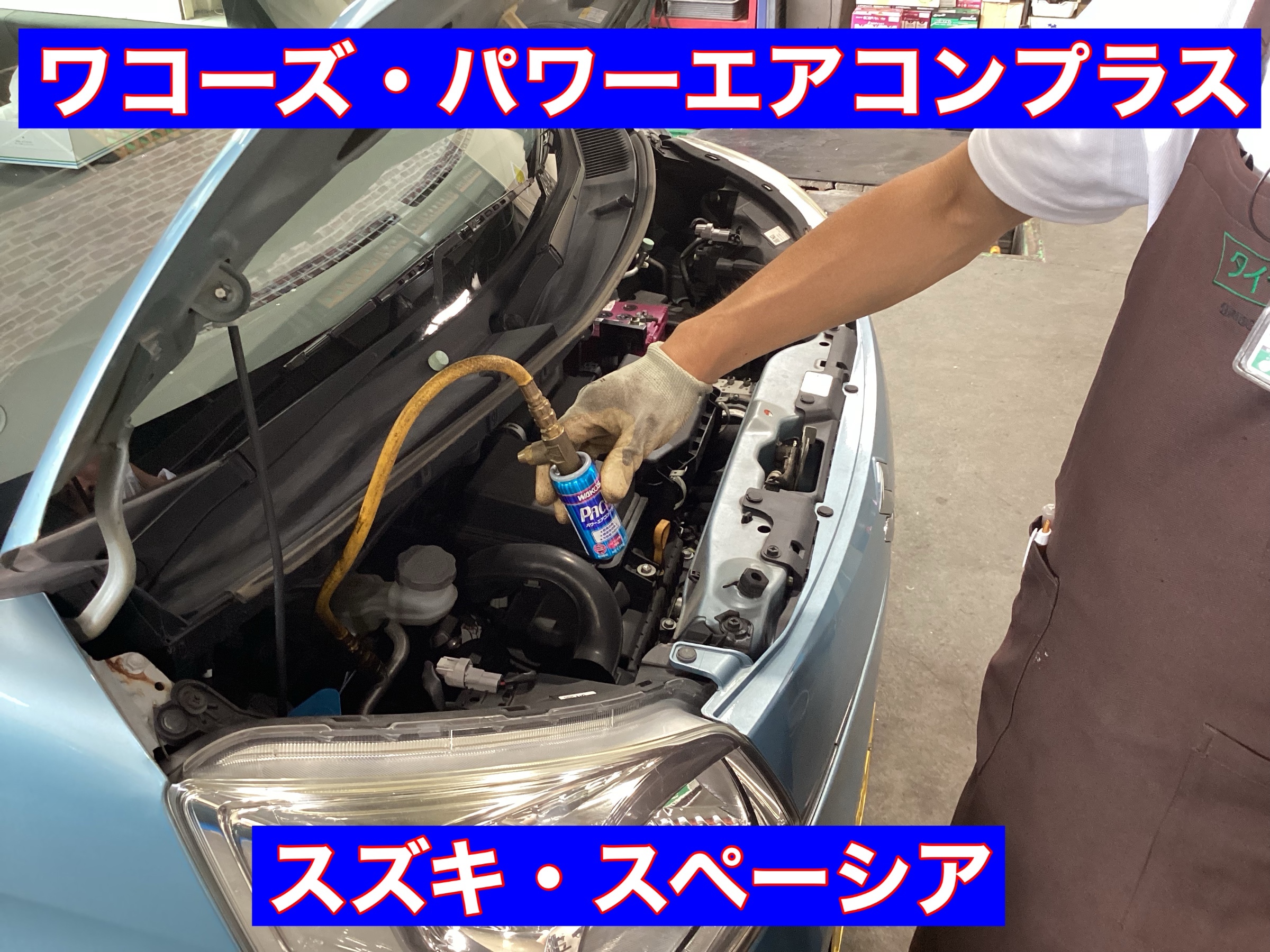 本日は、スズキのスペーシアにエアコン添加剤を施工していきます。