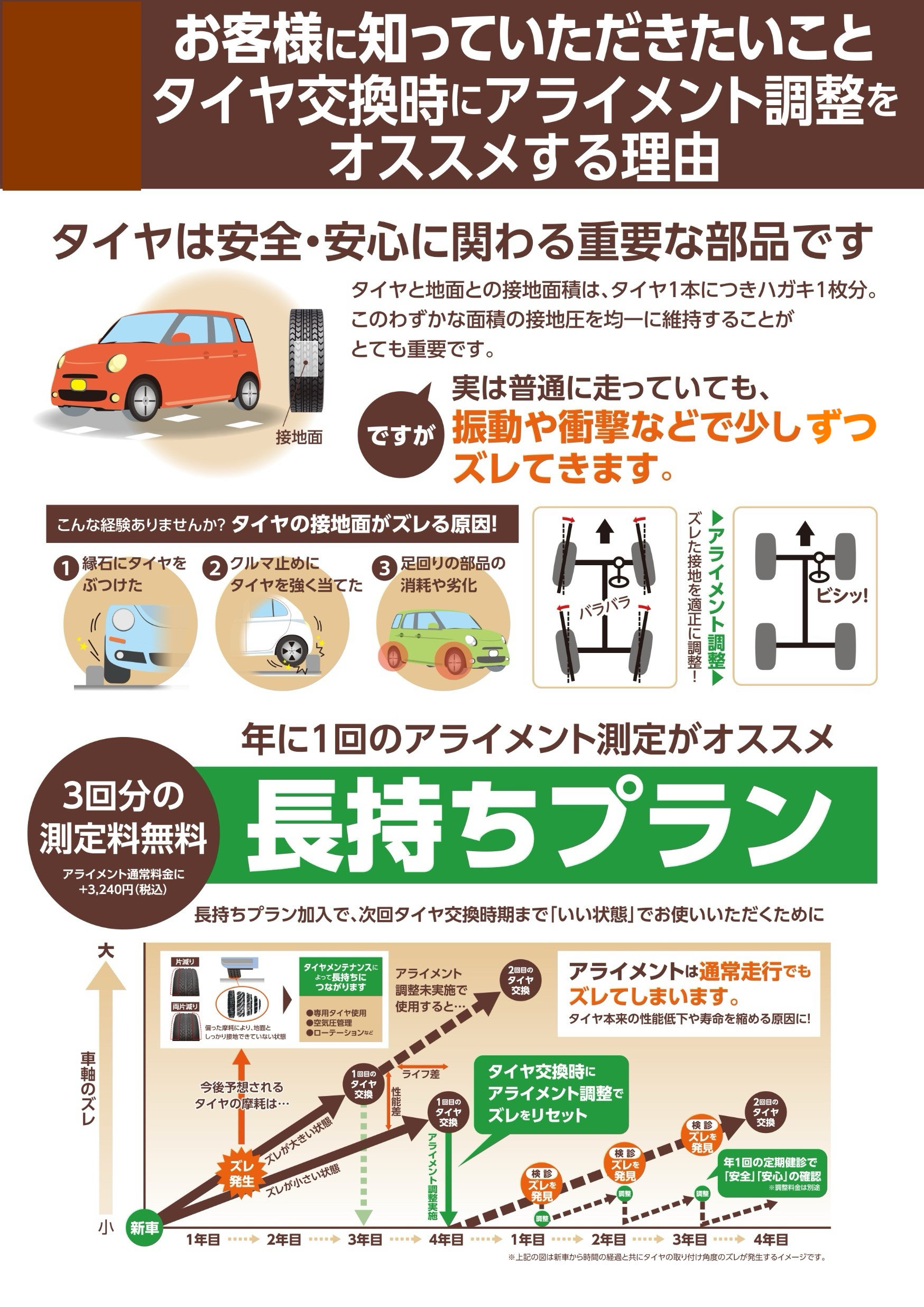 新しくタイヤを交換される際はアライメント調整がオススメです!