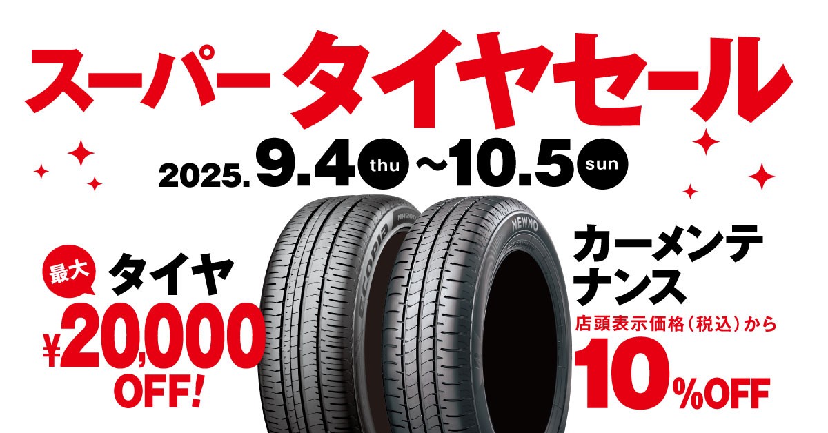 スーパータイヤセール開催中です!!秋の行楽シーズン前にタイヤ交換がオススメ!!