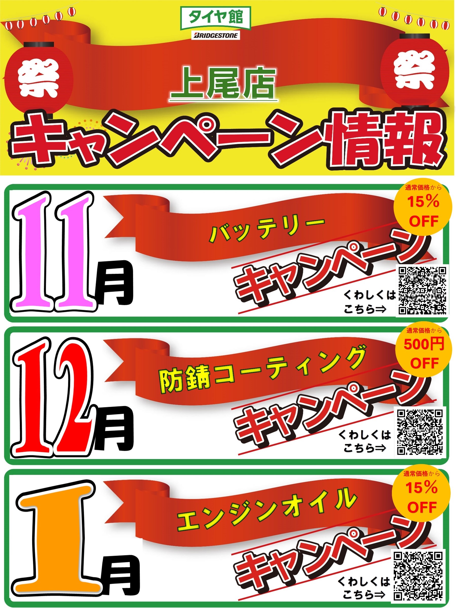 11月はバッテリー交換がお得です!!11月の3か月イベントのお知らせ