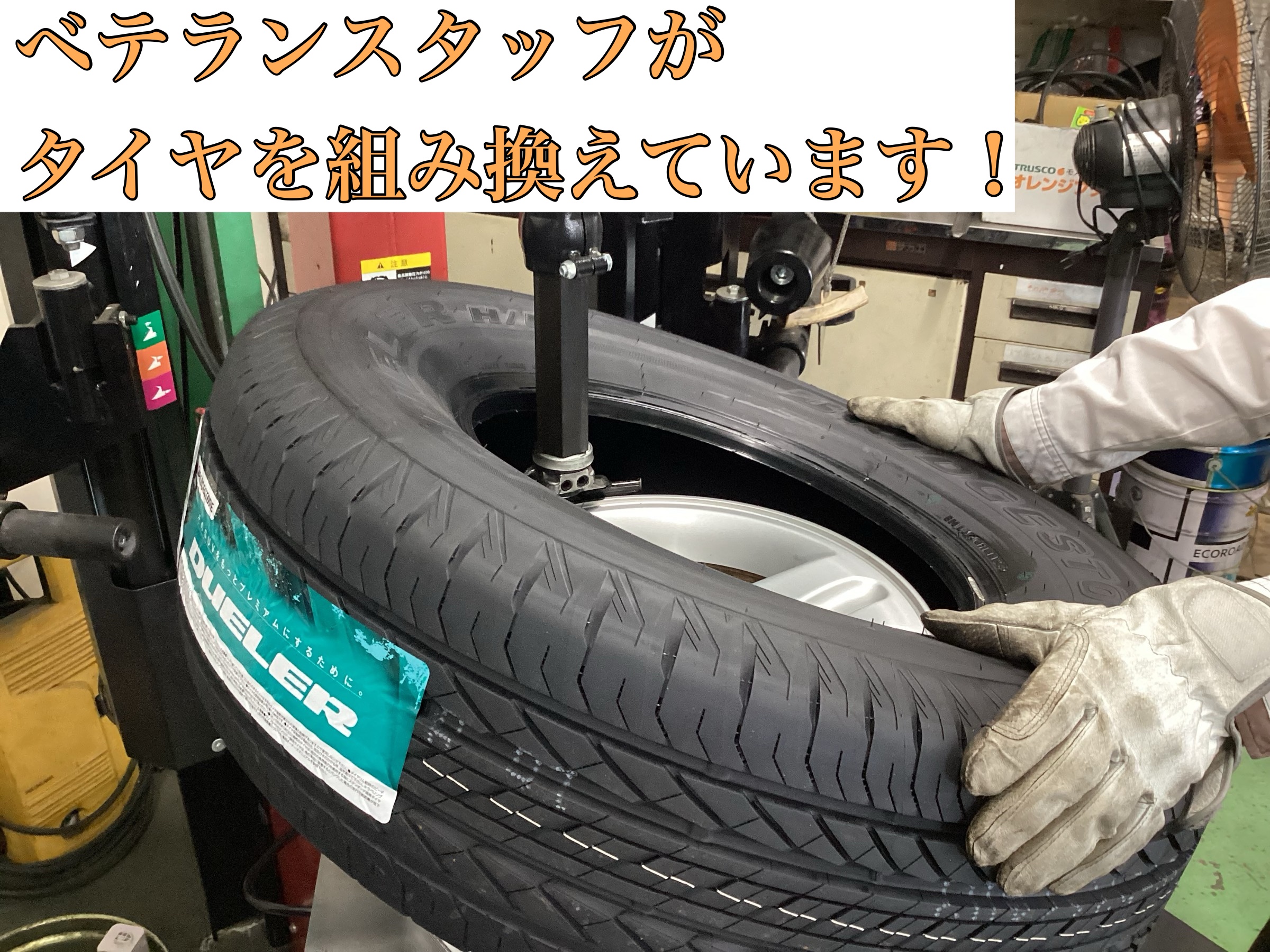 タイヤを取り外し、新しいタイヤに組み換えてホイールバランスを取ります。