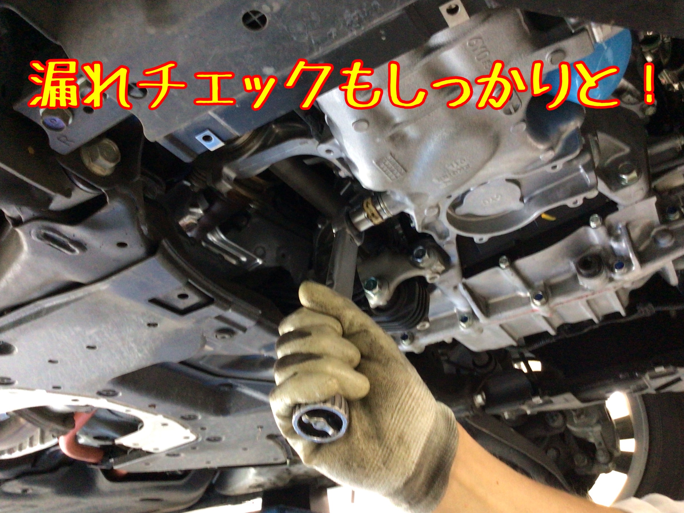 ↑新しいエンジンオイルを注入口より入れ、漏れチェックをして作業完了です!