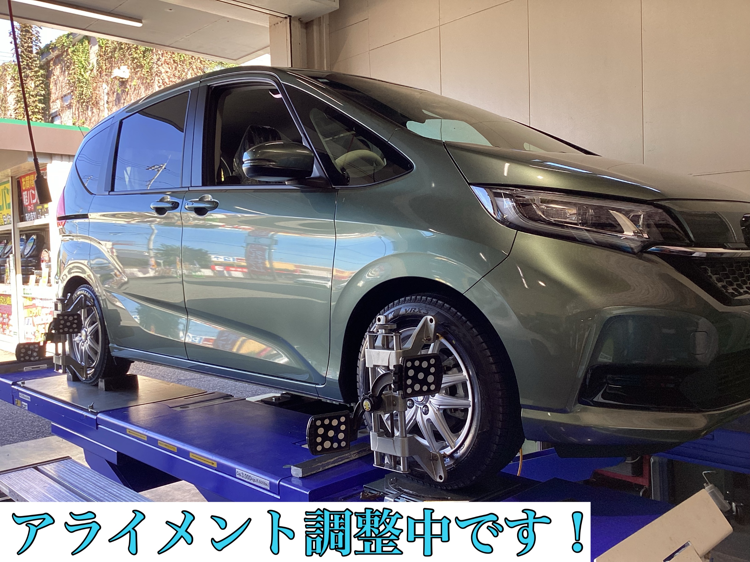 スタッドレスタイヤに履き替えたらアライメント調整作業に移ります!