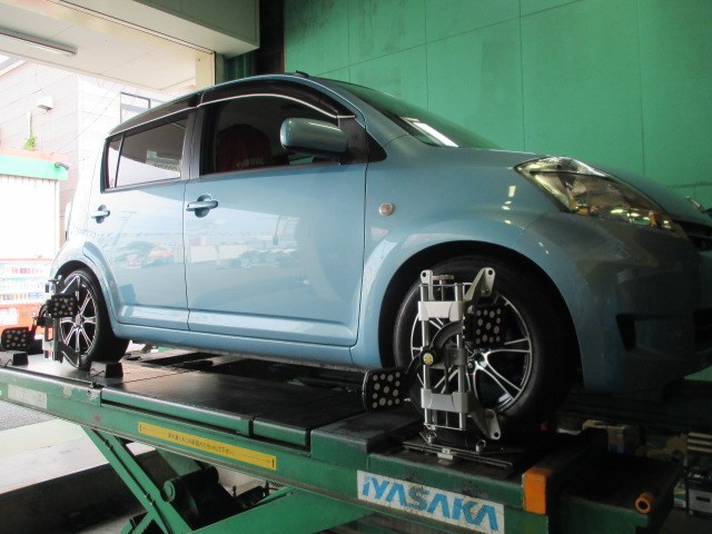 パッソのアライメント定期健診 ポスト 2017年5月30日 本日のご紹介は、以前タイヤ交換と一緒にアライメント施工させて頂いた、 トヨタのパッソです。 今回は、アライメントの定期健診でご来店頂きました。 アライメントも一度施工でOKではなく、定期的な検診(測定)が必要です。 皆様は、定期的にお車の点検等受けていますでしょうか? タイヤ館上尾店では、アライメントの定期診断セット販売中です。 お問い合わせお待ちしています。