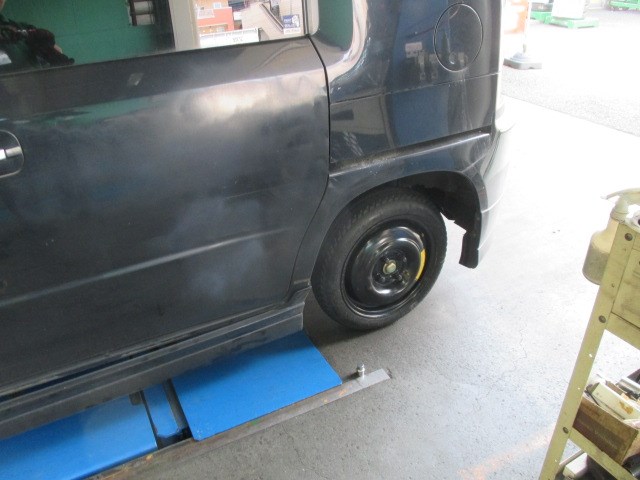 これでは自走できないので応急用のスペアータイヤを取り付けて走行できるようにしました。