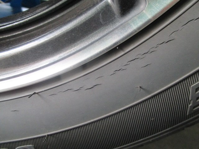 タイヤの溝はまだありますが、タイヤ側面と接地面にゴム劣化によるヒビが目立つようになっていました。
