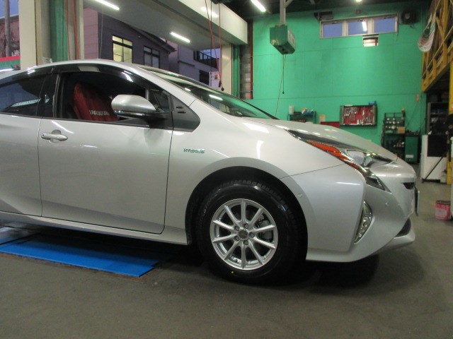トヨタのプリウスにスタッドレスタイヤとアルミホイール取り付けしました。