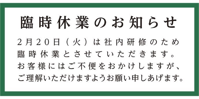 2月21日(水曜日)から通常営業いたします。