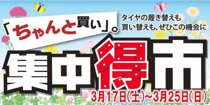3月17日から3月25日タイヤ館集中得市を開催致します。