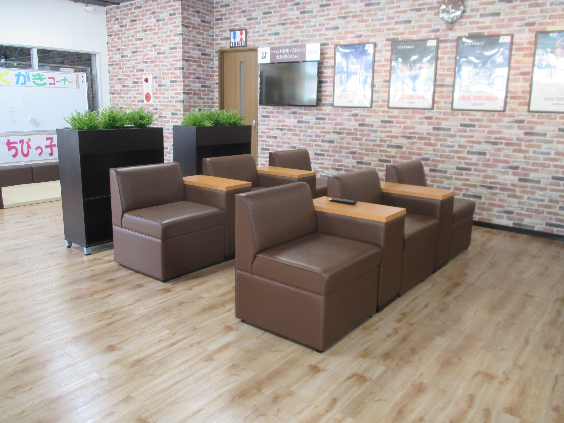 セール開催まであと3日! ポスト 2018年4月25日 タイヤ館上尾店です! 改装後の店内をちょこっとご紹介します。 ウェイティングは落ち着きのあるブラウンで仕上げてみました! またキッズコーナーも新調してみました! 皆様のご利用おまちしています。