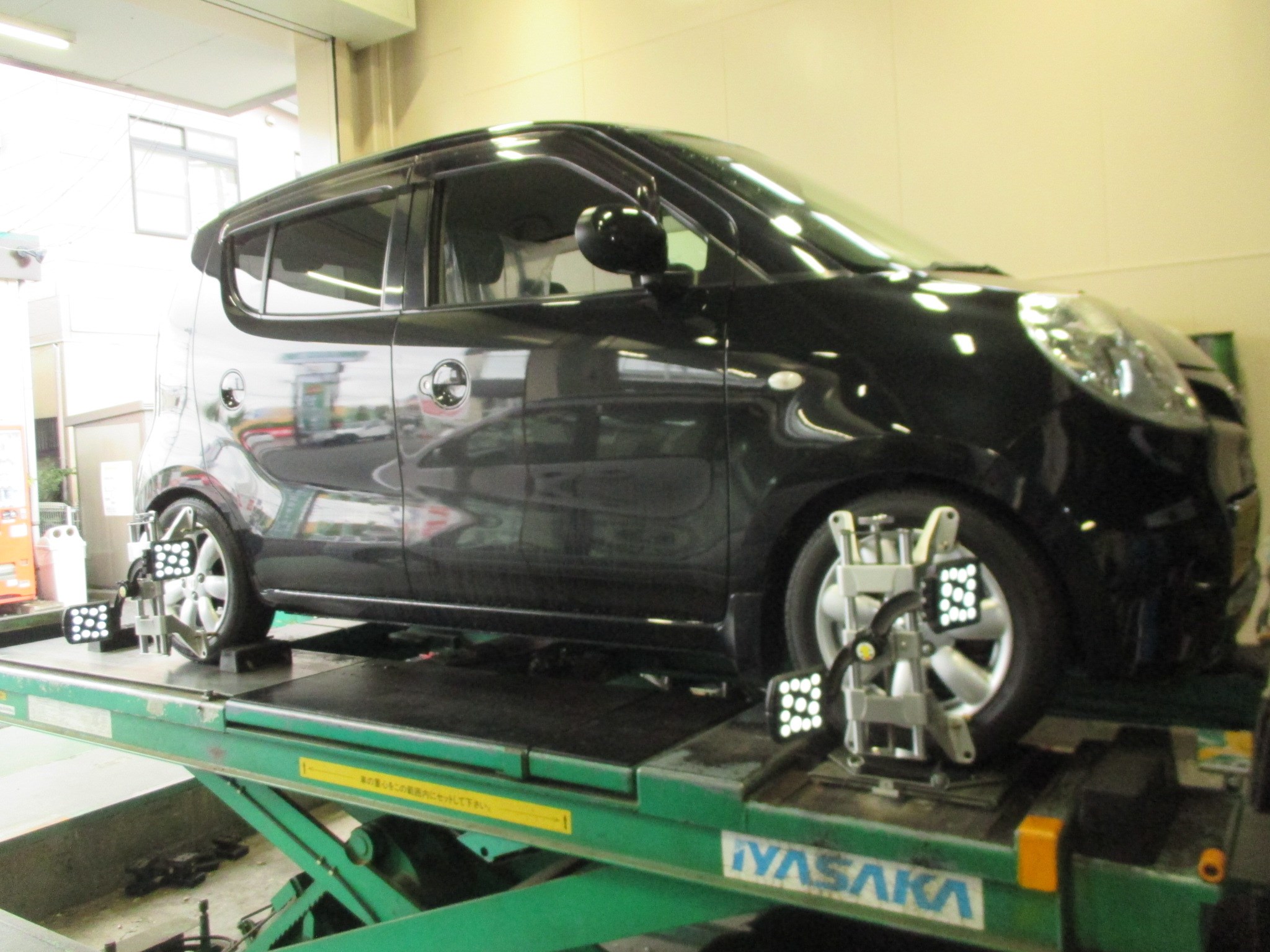 日産のモコはフロント側のトー調整のみですが、足回り交換後のアライメント