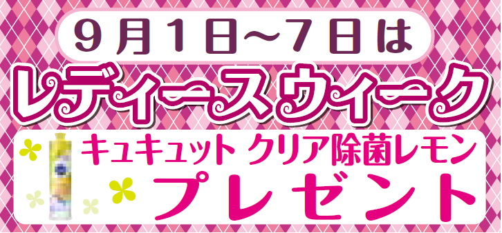 9月レディースウィーク開催♪ ポスト 2018年9月1日 毎月恒例のレディースウィーク開催!開催期間は月初1日から7日まで!期間中はエンジンオイルやメンテナンス品をお買い得価格で購入&交換できます!皆様のご利用をお待ちしています。