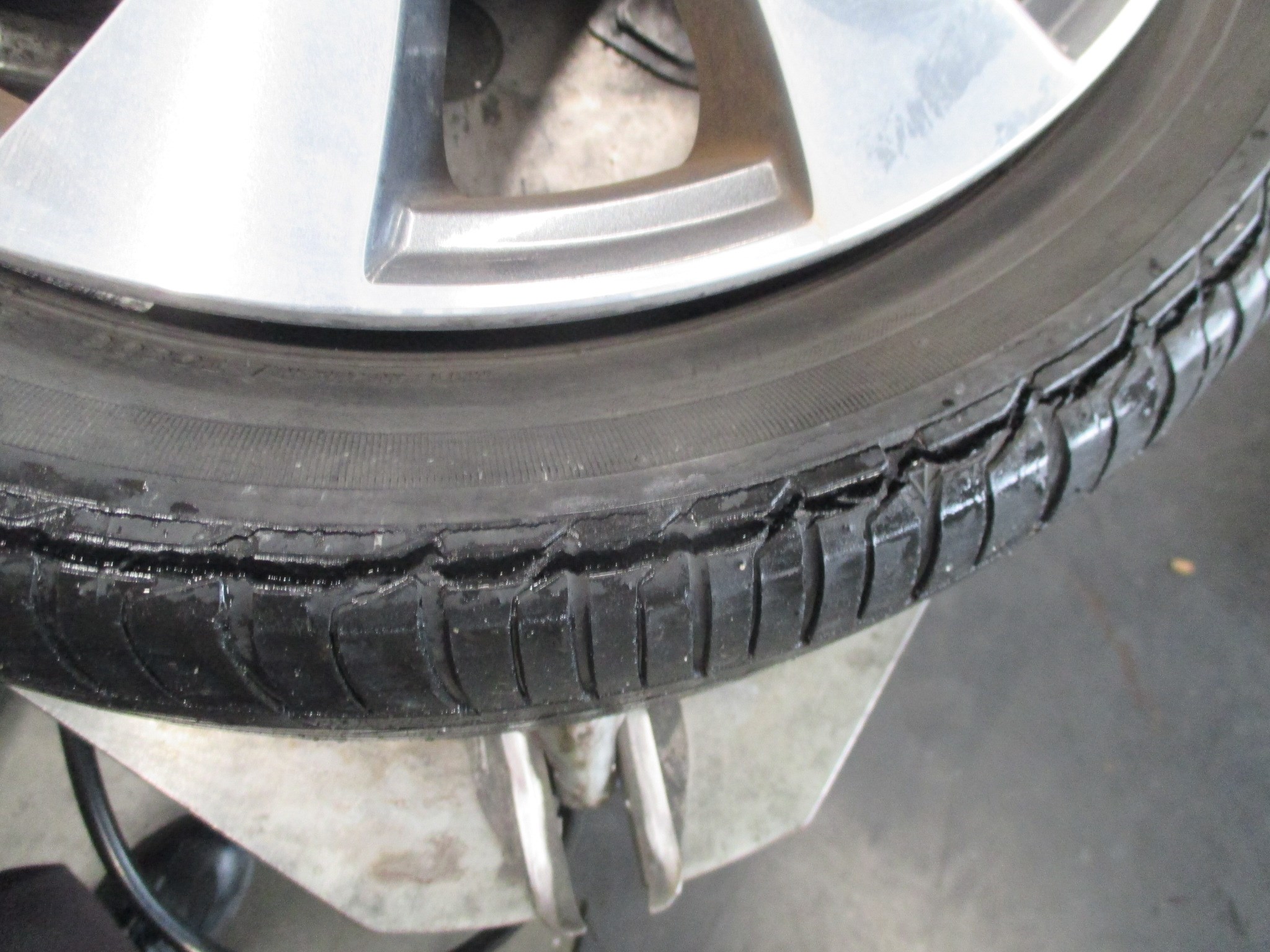 約9年使用していたタイヤですが、タイヤのサイド部に大きなひび割れが・・