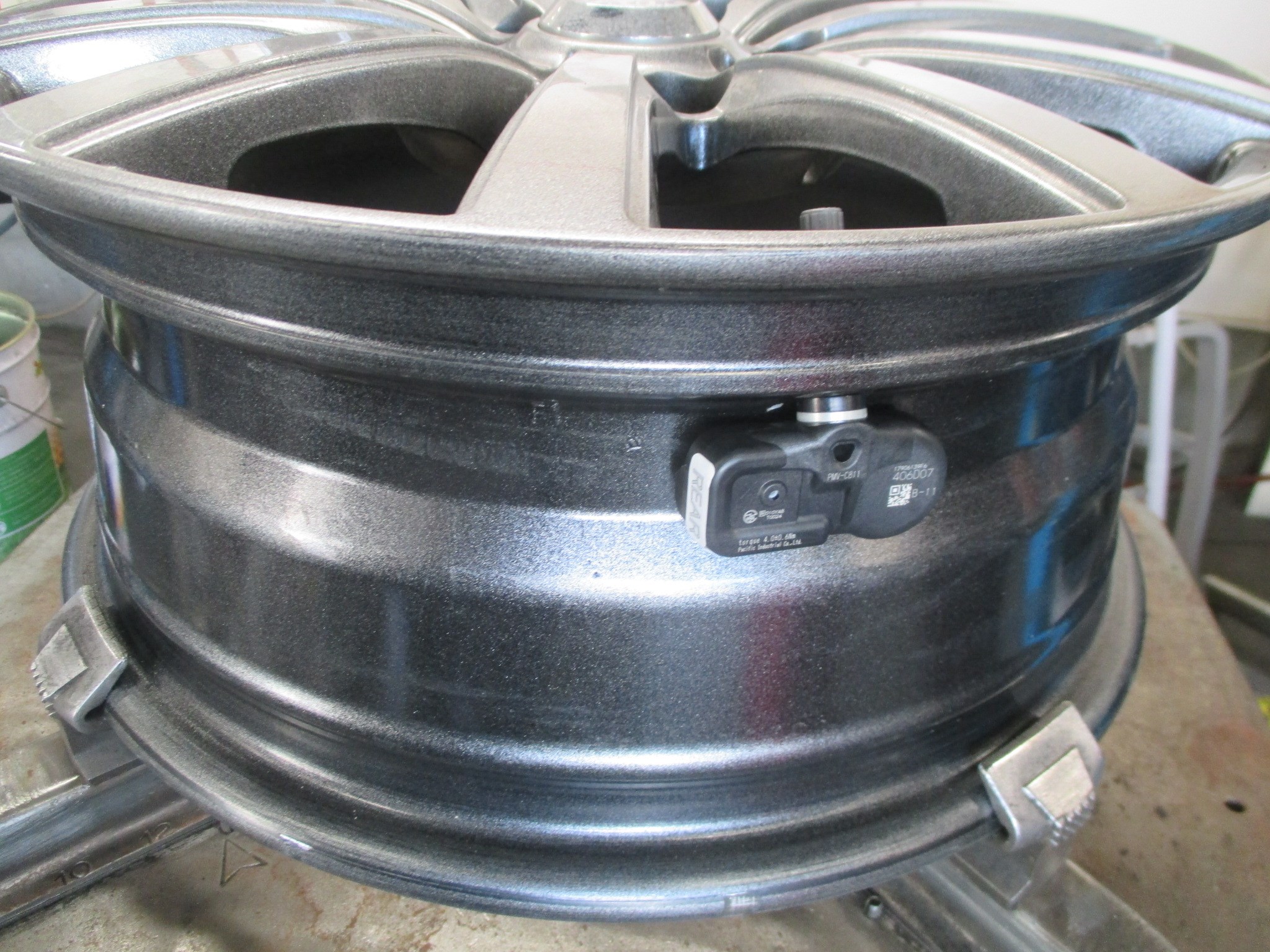 ホイールにセンサーを装着↓