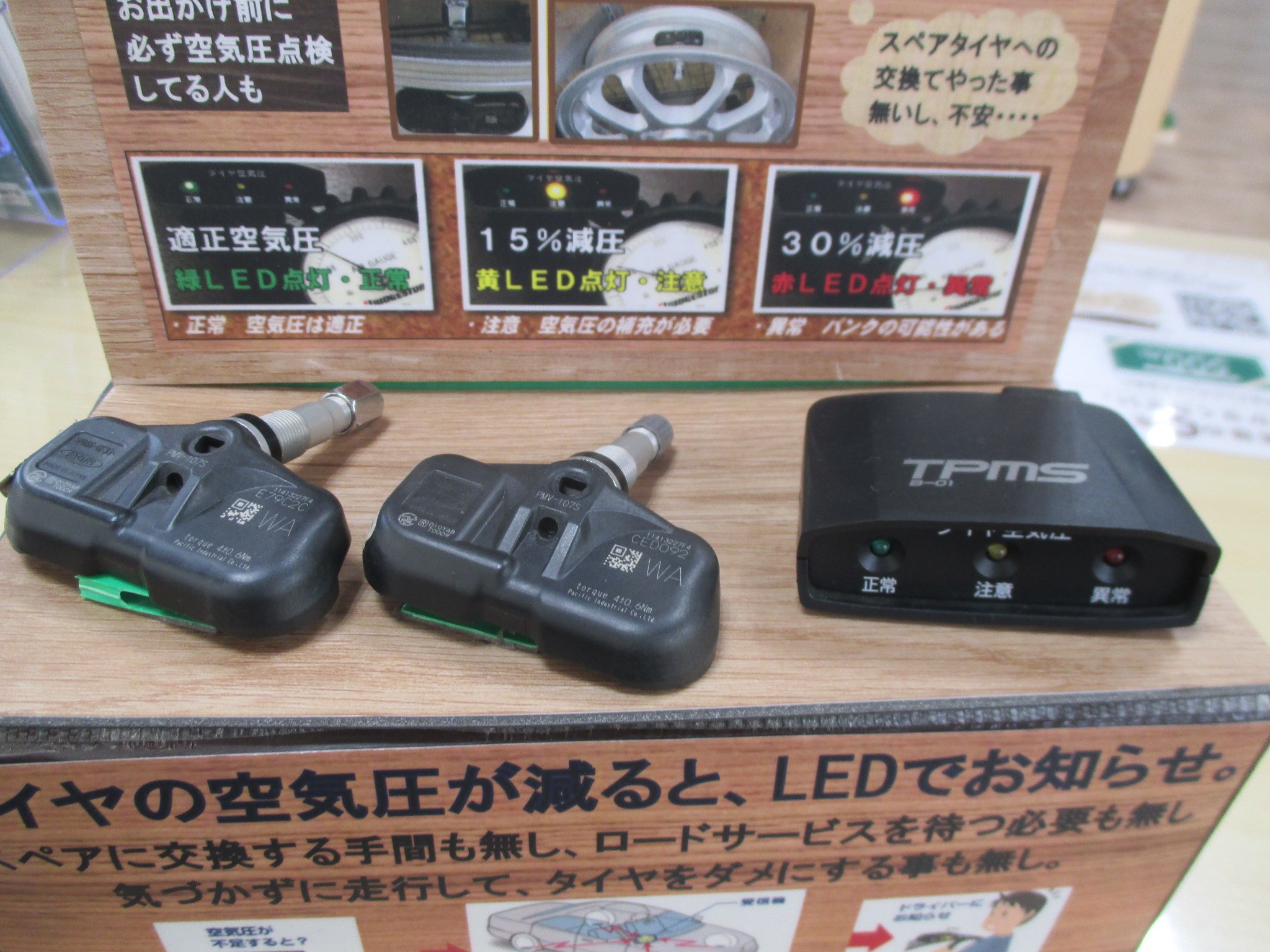 こちらのTPMS(タイヤ内圧センサー)は走行中に空気圧の変化を