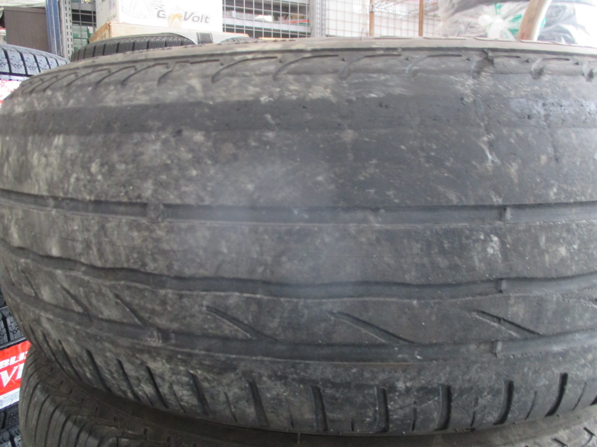 交換前のタイヤが外側摩耗が多く発生している状態でした。