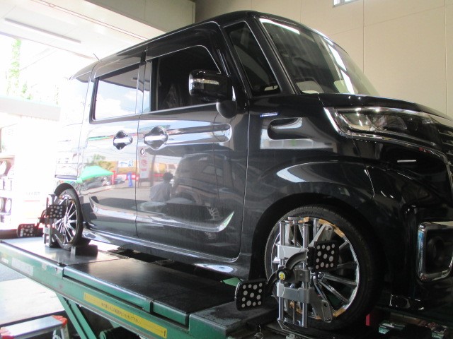 スペーシアカスタムのアライメント ポスト 2019年5月4日 本日のご紹介は、スズキのスペーシアカスタム 作業内容は、サスペンション交換後の仕上げアライメントです。 車高調整キット装着されているお車で、アライメントがまだでした。 フロントのみ調整できるお車でしたが、測定結果をもとにしっかりと 推奨値まで調整させていただきました。 ご利用ありがとうございます。 皆様のお車のアライメントもご相談お待ちしています。