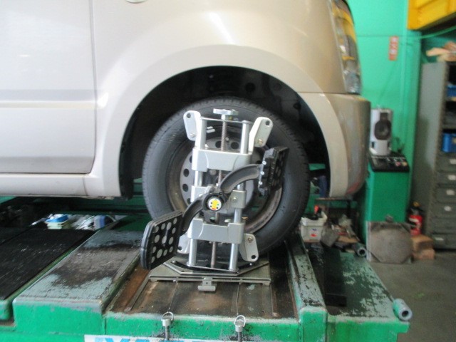 ワゴンRアライメント ポスト 2019年6月2日 当店で今日もアライメント調整です 新品のタイヤを交換後には、ぜひアライメントを調整することによって 車のクセがなくなり、快適な走行に繋がります。 走行距離が多く走ってるなかでも車の姿勢は変わってきますので、 是非、タイヤ交換にはアライメントを!! 興味がある方はスタッフまでご相談ください。