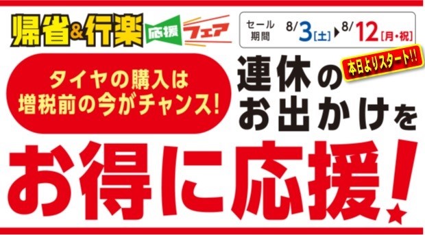 タイヤ館上尾店では8月3日(土)~8月12日(月)まで