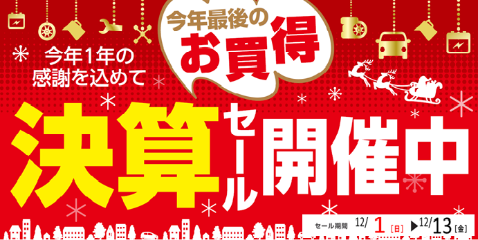 本日からタイヤ館上尾店の決算セール開催! ポスト 2019年12月1日 タイヤ館上尾店の今年1年の感謝を込めて今年最後のお買い得決算セール開催中!お買い得商品からブリヂストンの夏用タイヤや冬用タイヤまで幅広く取り揃えました!セール期間中のご利用お待ちしています。