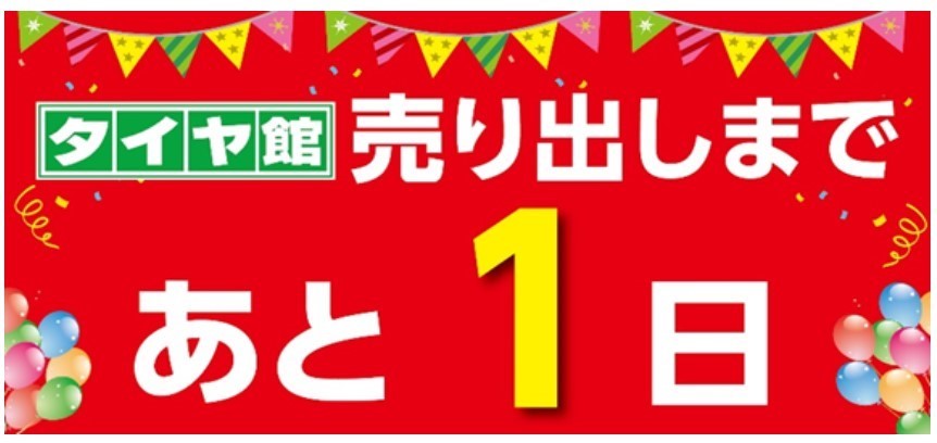 タイヤ館上尾店のセールは、明日の朝10:30から開催いたします!