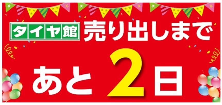 タイヤ館上尾店のセール開催まで、あと2日!