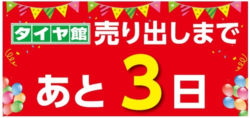 タイヤ館上尾店のセール開催まで、あと3日!