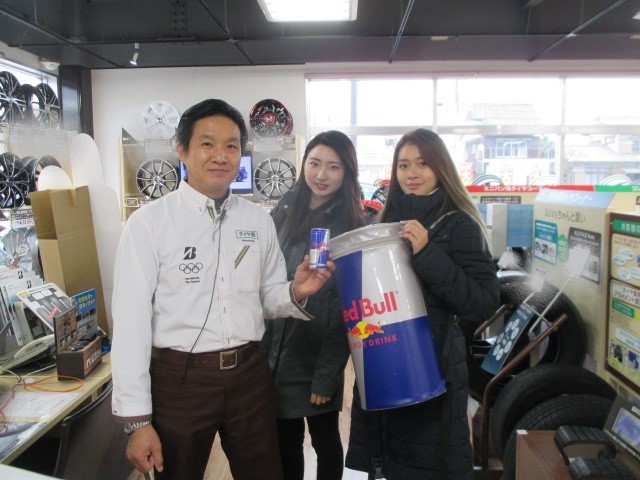エナジー頂きました。 ポスト 2020年2月16日 RedBullからエナジー頂きましたー! 今朝、開店準備をしていた時に?? どこかで見かけたお車が! レッドブルのお車ではないですか! そうです、タイヤ館上尾店の従業員に 雨も降る中、エナジーを届けに来てくれました! 翼生えちゃいそうです! ありがとうございました。
