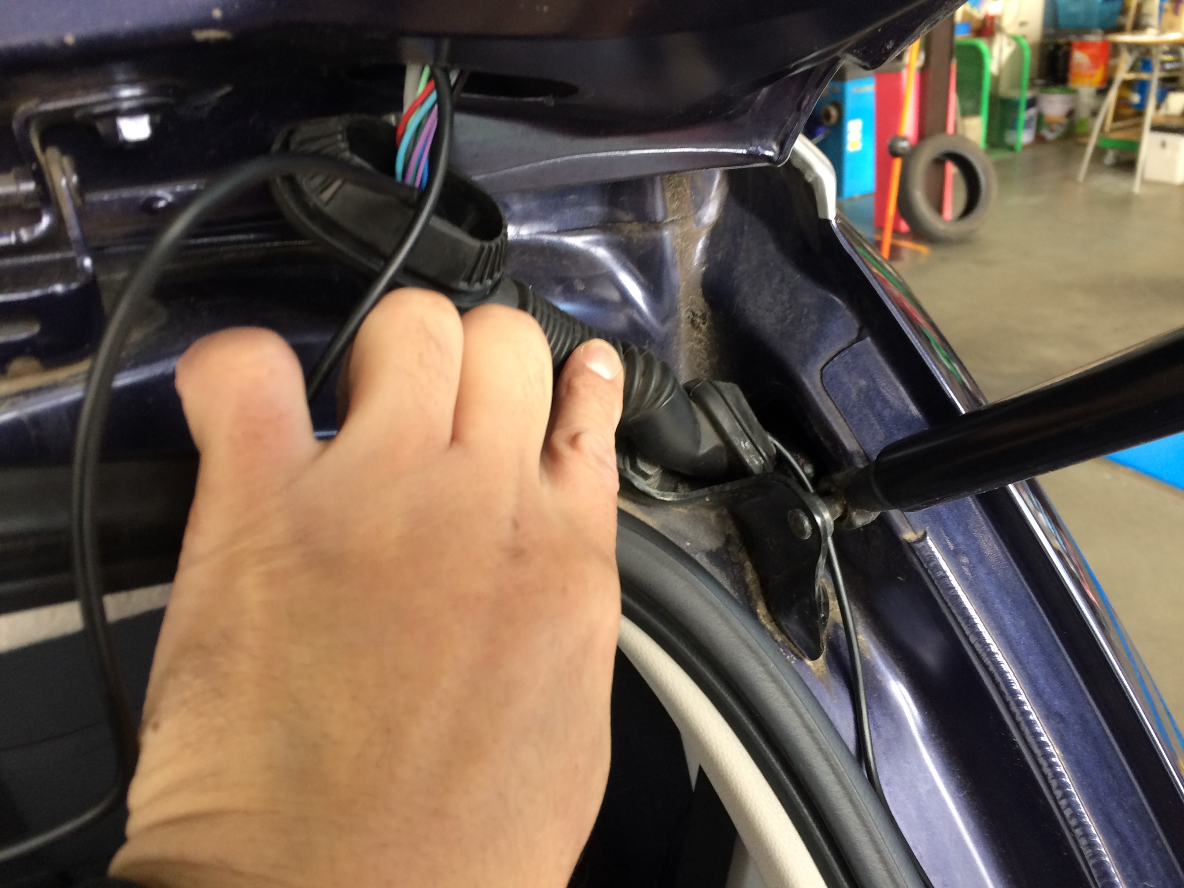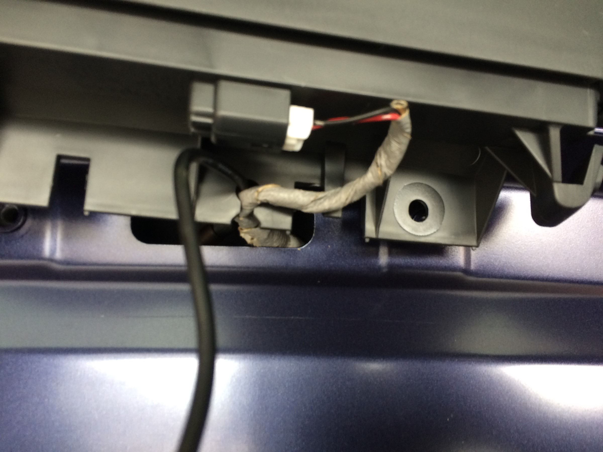 後は前につけるカメラ。電源線とリアカメラの配線取り付け。