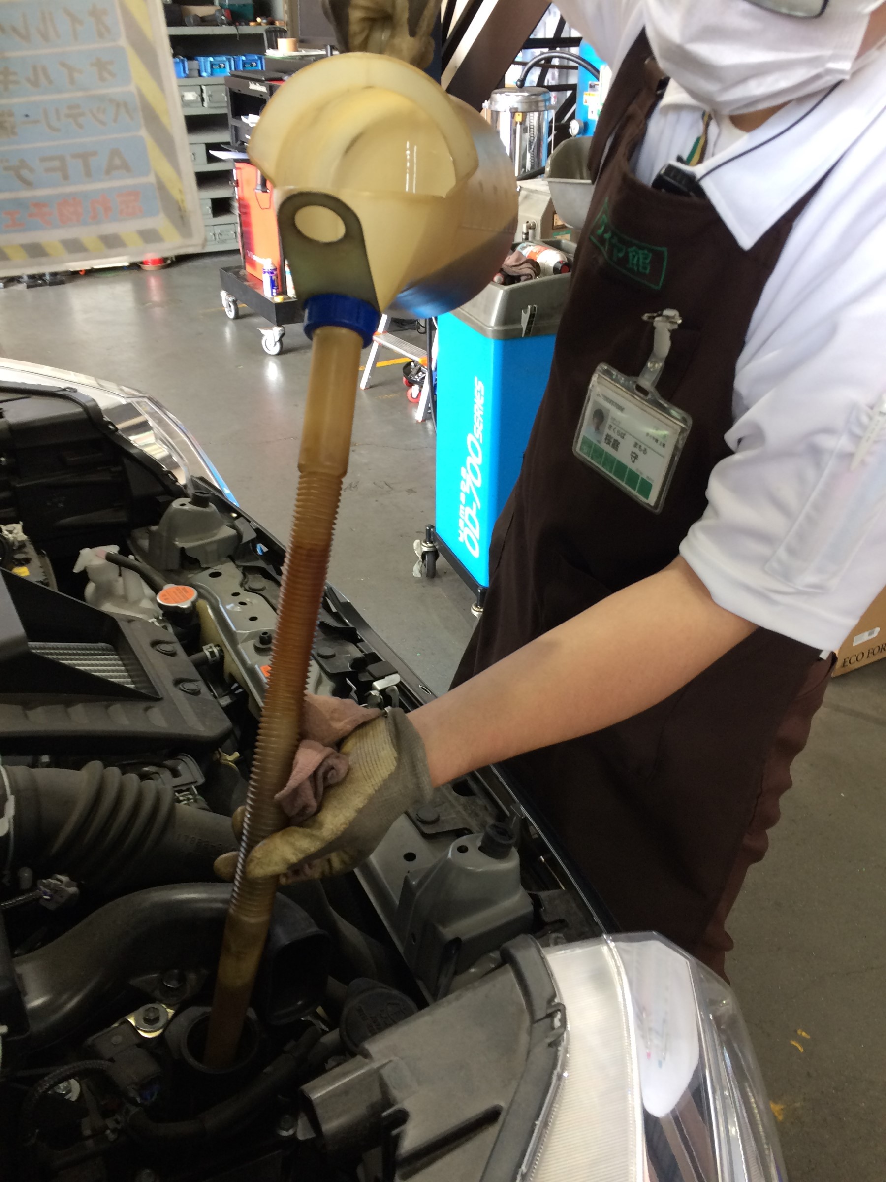 交換後、お客様にオイルの色を確認して頂き「すごいキレイになったね!」とのお声を頂戴しました。