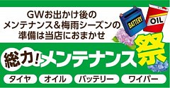 梅雨前準備にお車のメンテナンスいかがですか? タイヤ館上尾店では、ただいまメンテナンス商品を無料点検実施中です! 点検だけでもお気軽にご利用ください。 皆様のご来店お待ちしています。