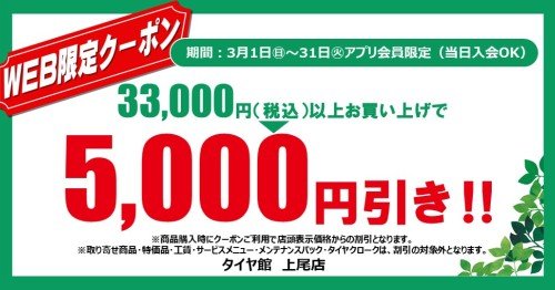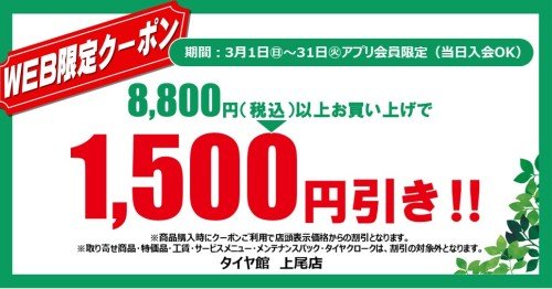 こちらのクーポン券は、タイヤ館上尾店のみ有効となります。