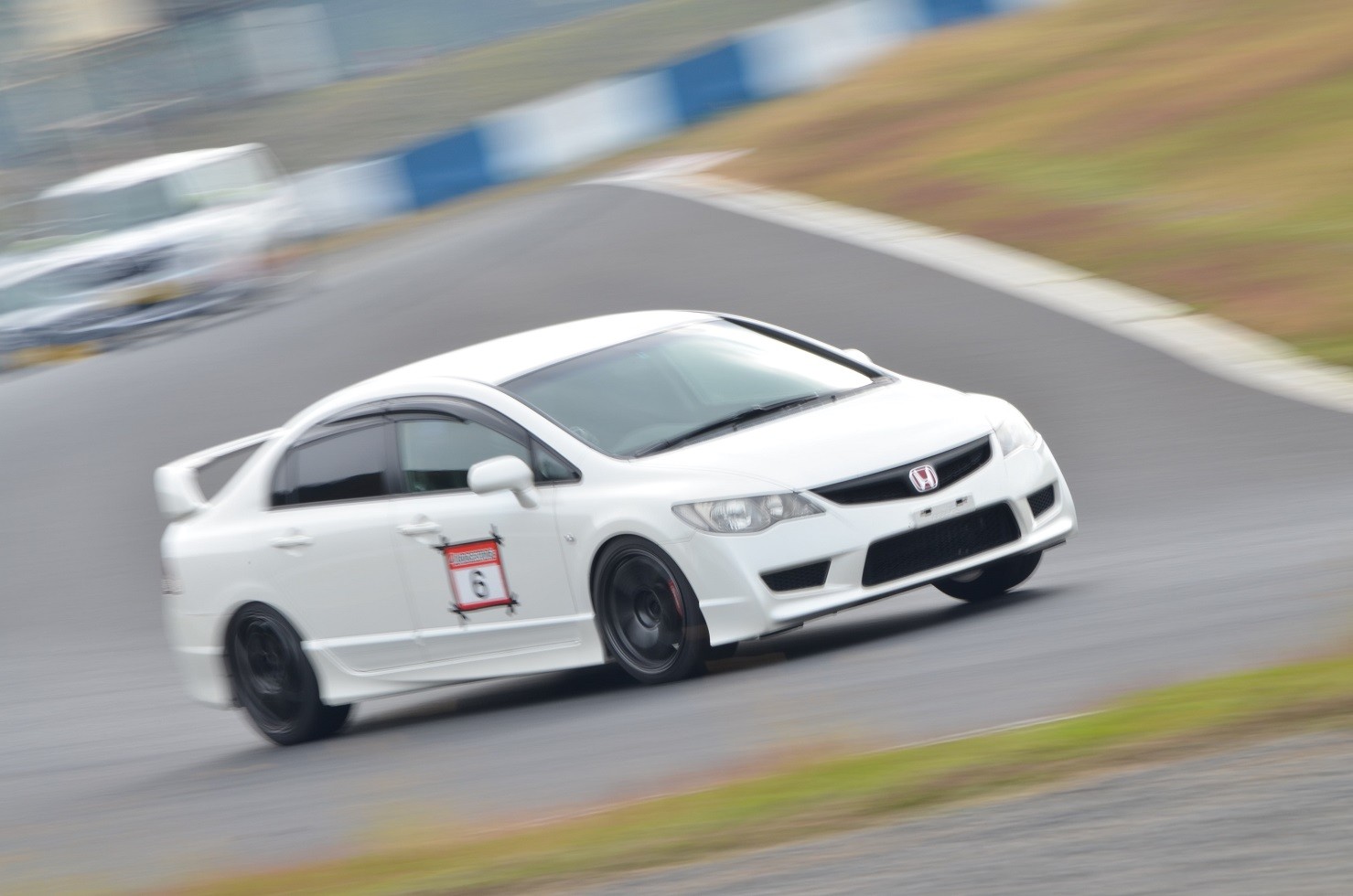 数年前にノーマルフェンダーに295サイズのRE71RSを装着し、少しずつタイムアップの為セットアップを行っています。