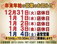 12月の営業・店休日のご案内です ↓ ↓ ↓ ご確認の上、お間違えの無きようよろしくお願いいたします。