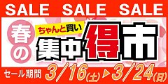 先日より開催いたしておりました『集中得市』は24日(日)をもちまして 終了とさせていただきます。 連日沢山のお客様にご来店いただき、まことにありがとうございました!! 時間帯によっては待ち時間がかなり発生してしまい、お待たせしたお客様 申し訳ございませんでした。 集中得市は終了しました...