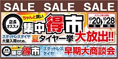 こんにちは。 秋晴れが気持ちいいですね! もうすぐ紅葉シーズンということで、お出掛け予定を立てられている 方も多いのではないでしょうか?? お出掛け前には車のメンテナンスです!! トラブルがあってはせっかくのお休みが台無しですよ・・・。 タイヤ館明石では20日(土)から『集中得市』を...