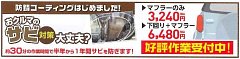 いつもご覧頂きありがとうございます! 今回はお車の防錆施工のご案内です♪ 塩を含んだ海風等により下回りは錆びやすくなります。 マフラーに穴が空いてしまったり、フレームが損傷すると費用も かかりますし、安全には走行できなくなりますよね。 施工前です。 施工後です♪ お時間も20分程で出来ま...