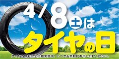 ご存知でした??タイヤの日!! 目的は・・・ より多くのドライバーにタイヤへの関心を高め、交通安全対策の推進活動を行ないます。 なお、「タイヤの日」を4月8日としたのは、春の全国交通安全運動の 実施月である4月を、 また8は輪(タイヤ)のイメージからとったもの。 広く一般ドライバーにタ...